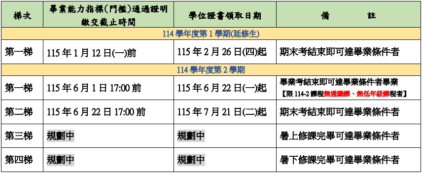 【公告】114學年度 -【畢業門檻通過證明繳交】及【畢業證書領取】時間